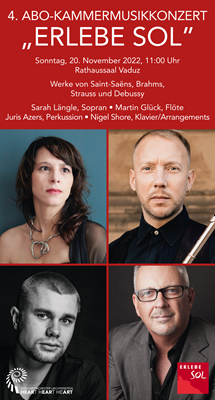 Sarah Längle, Sopran Martin Glück, Flöte Juris Azers, Perkussion Nigel Shore, Klavier/Arrangements