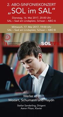 Der ABO-Vorverkauf (CHF 120 / CHF 60 für alle drei Konzerte) für „SOL im SAL“ in Schaan beginnt am 25. November 2016 und dauert bis 20. Dezember 2016. Sie sparen 20 % gegenüber dem Kauf von Einzeltickets.