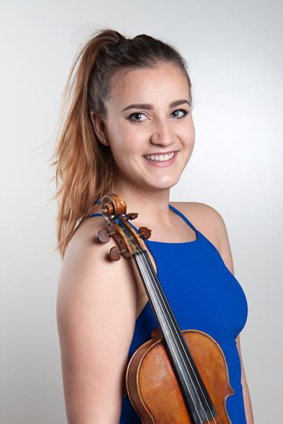 Sie spielt auf einer Violine von Stephan von Baehr (Modell „Antonio Stradivari, Goldene Periode“, Baujahr 2014).